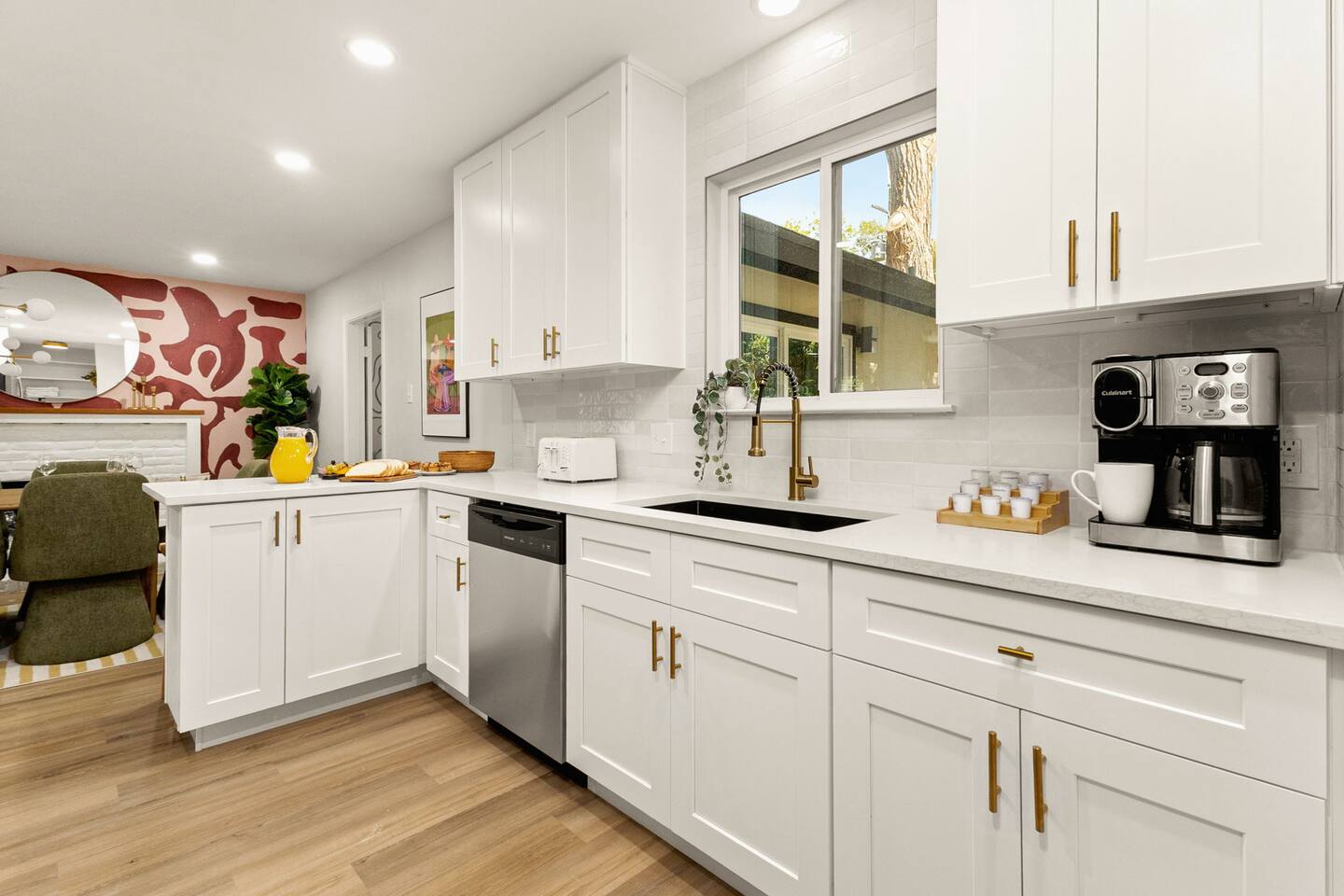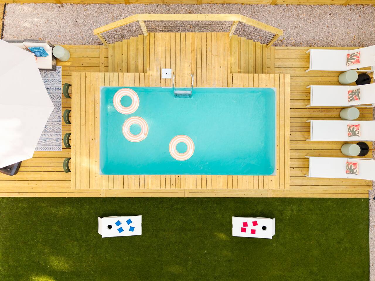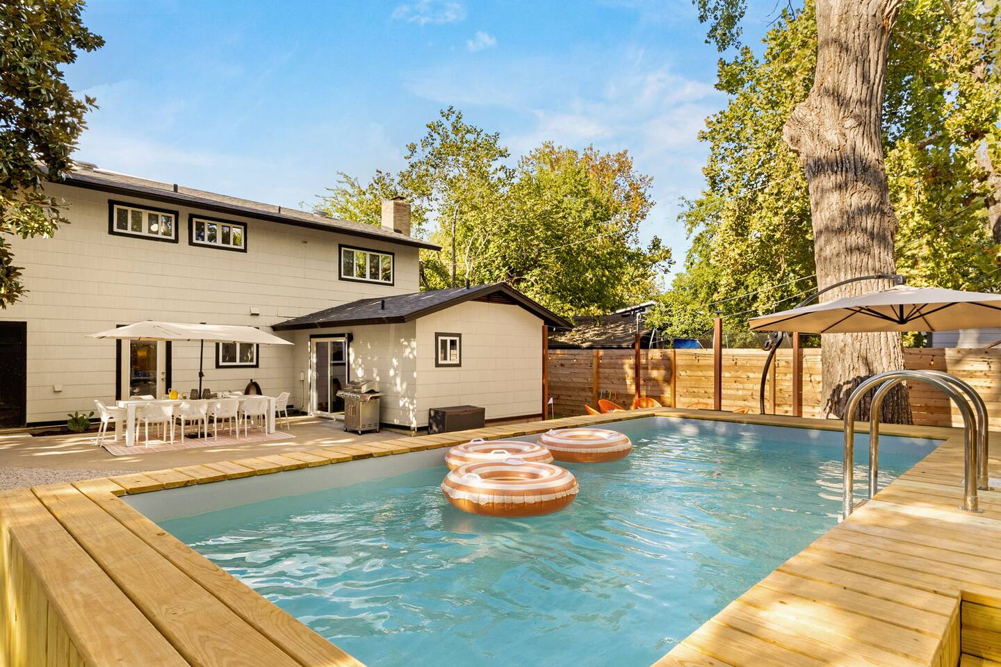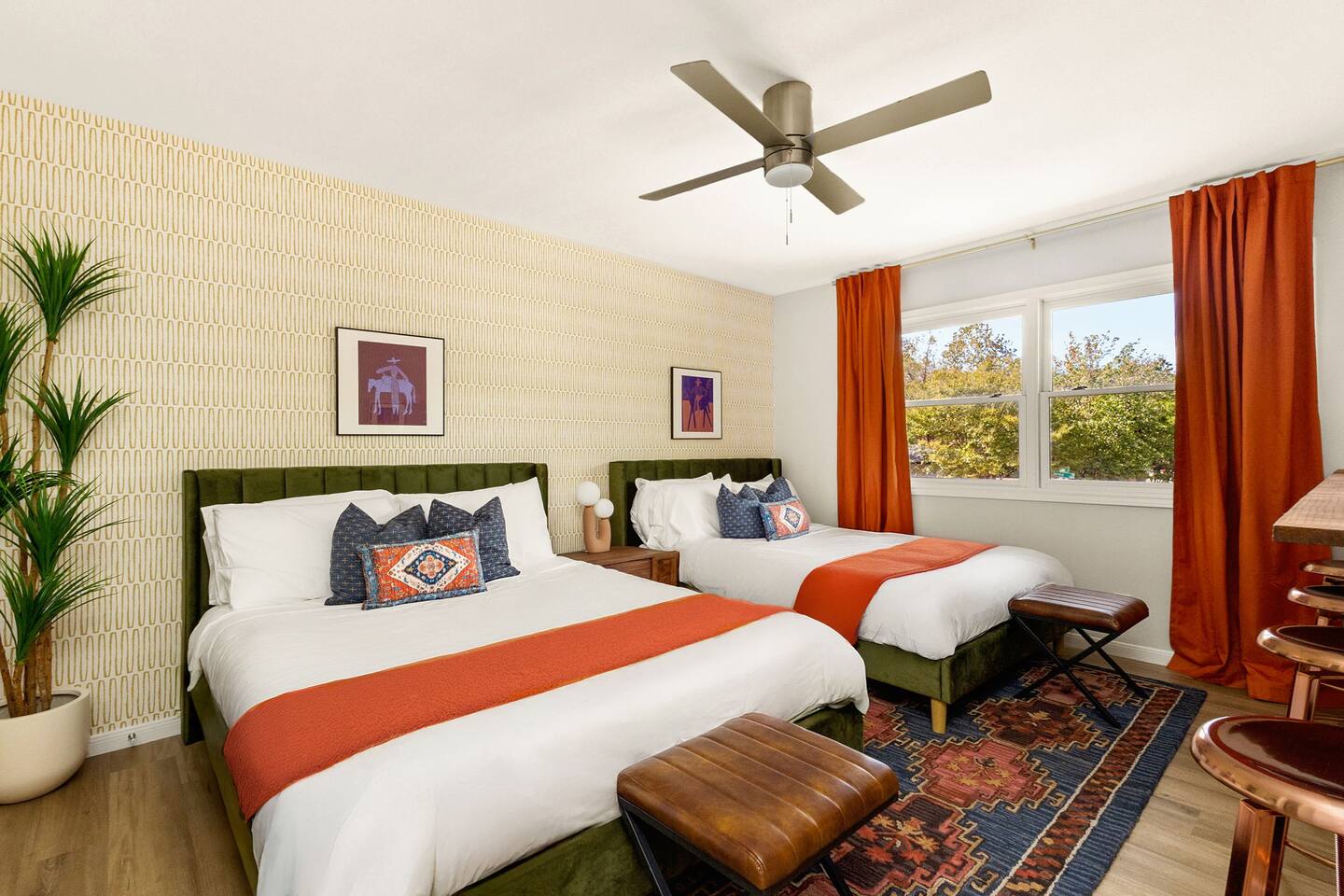 Centrally located in South Congress (SoCo), our 4 bed / 3 bath retreat comfortably sleeps 14 and is packed with thoughtful amenities for an unforgettable Austin experience! LUXURY RESORT-STYLE BACKYARD: ☀ Heated pool for year-round swims ☀ Covered hot tub lounge with outdoor TV ☀ Cozy string-lit fire pit ☀ Mini golf for some friendly competition! ☀ Full-size ping pong table ☀ Large outdoor dining table + grill ☀ Plenty of outdoor seating ☀ Yoga mats & yard games! PRIVATE MOVIE THEATER ROOM: ☀ 100-inch screen with 4k projector ☀ Immersive surround sound system ☀ Popcorn machine for movie night vibes ☀ Get-ready station with light-up mirrors! ☀ Retro arcade games ☀ Oversized sofa with pull-out queen sleeper FIRST FLOOR COMFORTS: ☀ Open concept living & dining ☀ Fully stocked kitchen w/ stainless steel appliances ☀ Premium coffee station for your morning kick! ☀ King bedroom w/ ensuite bath + workspace ☀ Laundry room with washer & dryer SECOND FLOOR DREAMING: ☀ Double queen bedroom w/ ensuite bath + glam station! ☀ 2nd king bedroom ☀ Additional double queen bedroom ☀ Full hallway bathroom CLOSE TO EVERYTHING: » Downtown Austin → 10 min » South Congress (SoCo) → 6 min » Zilker Park (ACL) → 14 min » Rainey Street → 12 min » State Capitol → 16 min » UT Football → 18 min » Austin Convention Center → 17 min » The Domain → 25 min » Lake Travis → 35 min » Austin-Bergstrom Airport → 11 min Whether you’re lounging poolside, toasting under string lights, or getting ready for a night on the town, Sunset Social is where your Austin memories shine brightest. Designed with group getaways in mind, this home mixes resort-style fun with cozy cowboy touches—the perfect backdrop for a weekend with your favorite people in ATX.